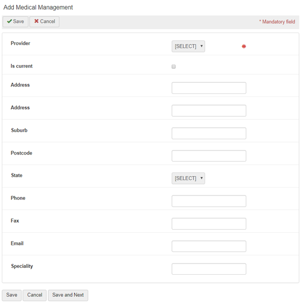 Select if this is the current provider. This can be used to cater for the changes in the provider assigned to the case, such as one for the GP, one for a physio etc. |
