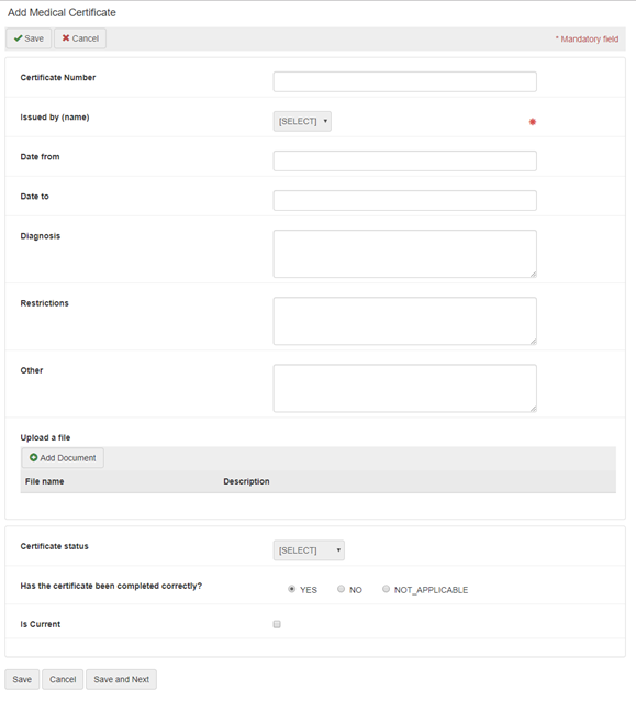 Select if this is the current medical certificate. This can be used to cater for new/ updated medical certificates added to the case. |