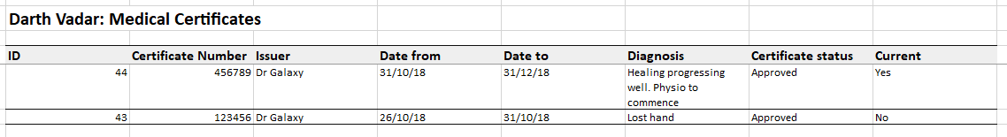 Reports can be run from the overall case management page or from individual sections within a case. In both cases, the steps to run the report are the same. The examples below uses the medical certificates page to illustrate the steps.