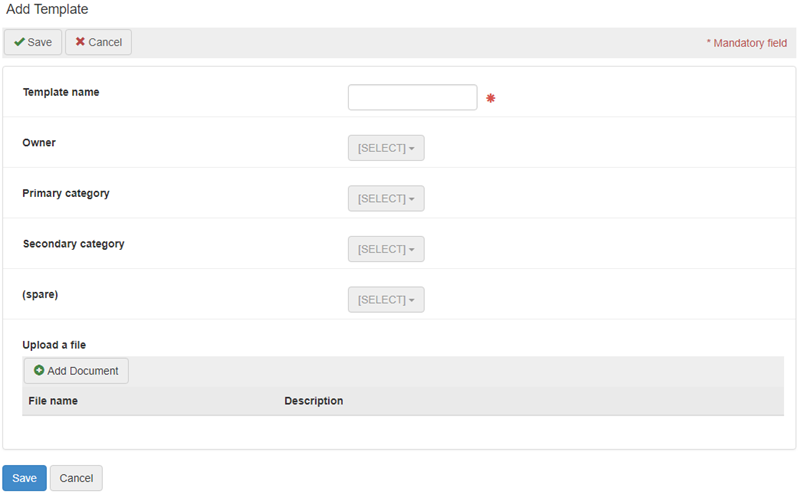 Important: Only the system administrator has the permission to add, edit and delete templates. This should be managed very carefully to retain the integrity of the system and to avoid duplicate templates. It is a worthwhile exercise to create a standard set of guidelines that all new templates entered must follow.
