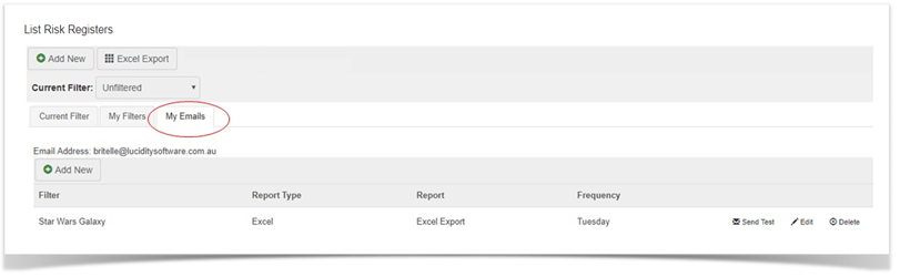 Automatically emailed reports can be specified using the My Emails feature.