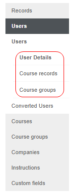 Whenever a user profile is accessed, a mini menu on the left had side will appear. User details, course records and course groups are all accessible this way.