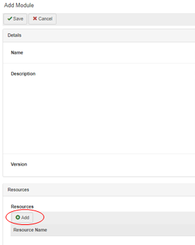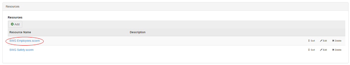 The Resources screen is part of the Course Module page and is where administrators upload eLearning content (resources) for the user to view or read while completing the module.