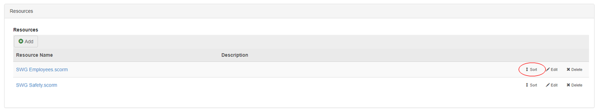 Resources will be displayed to the user in the order they appear in the list. To resort the order resources will play, from the Resources section within the Module page: