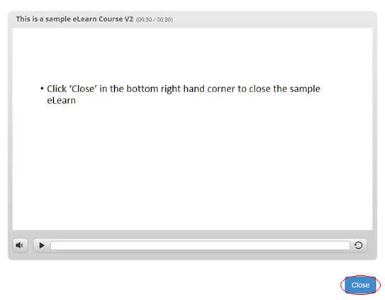 Tick to enable the resource to open in an popover window i.e. it sits in front of the course navigation screen. This enables a Close button to be displayed in the presentation. Always select this option for PDF files. Responsive Presentations The popover option is required for PDF resources. This ensures navigation tools are available to the end user and ensures every page is viewed prior to being marked as complete. The popover option is not recommended for responsive SCORM resources (ie - SCORM content that adapts to different device sizes such as mobile phones). Errors may display in presentations when this is selected on mobile devices. The popover option is not recommended for links and URL resources. |