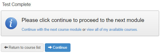 - Continue - proceed to the next module in the course.