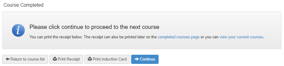 Once complete, courses will be viewable via the Completed Courses page.