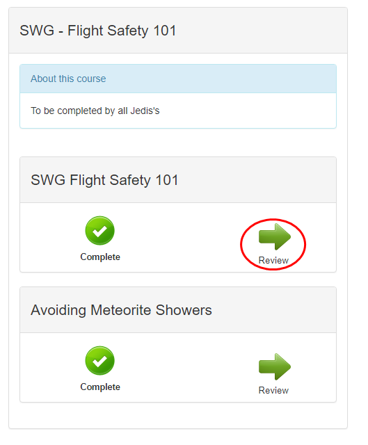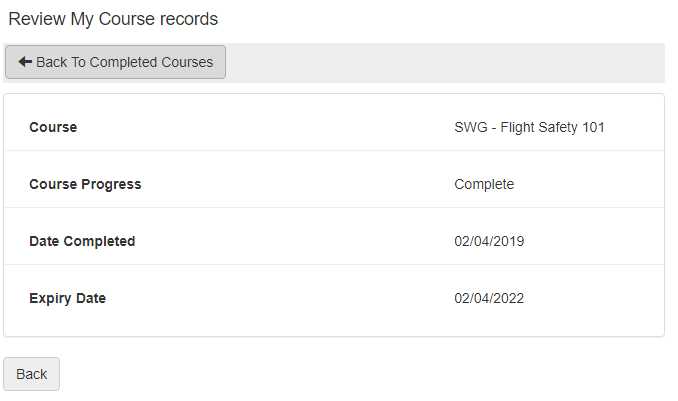 - Click Back to Completed Course or Back to return to the Completed Courses page.