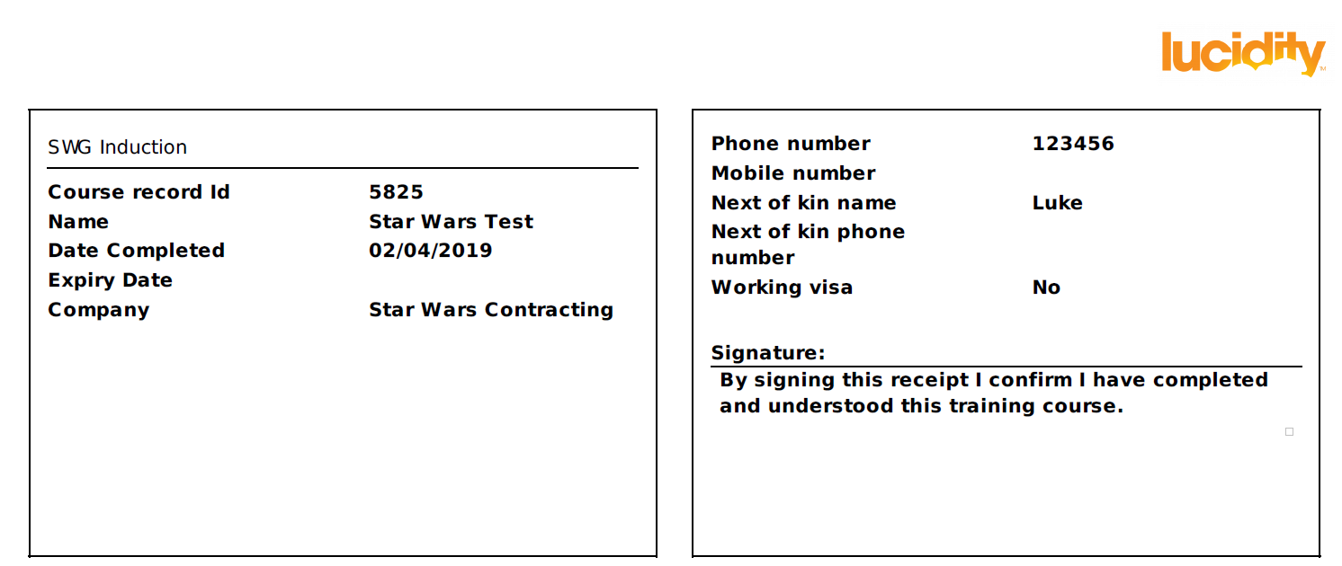 Induction completion receipts are often required to be presented prior to commencing work for an organisation.