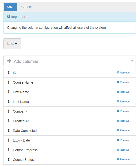 Columns within each page of Lucidity Induction as well as those displayed in reports can be manipulated by the system administrator. The columns displayed as well as the order in which they are displayed can be adjusted. It is important to remember that changes made to columns affect all users viewing the pages or running reports.