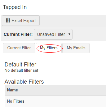Any saved filters can be easily accessed via the Current Filter drop down selection option above the filter tabs. This is a short-cut route for applying saved filters.