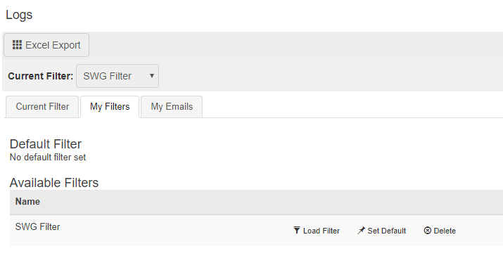 - Excel Export: an Excel report reflecting the current filters selected.