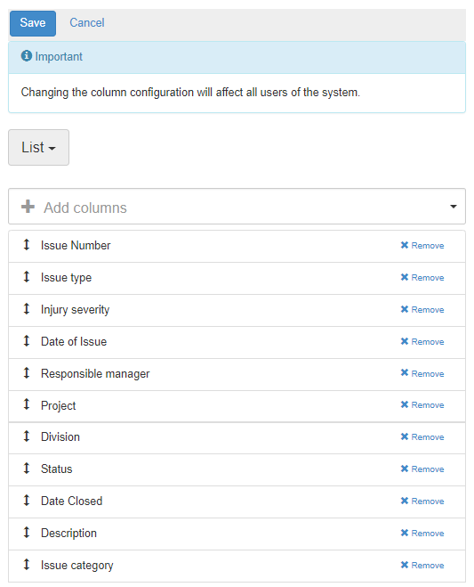Columns within each page of Lucidity Incident as well as those displayed in reports can be manipulated by the system administrator. The columns displayed as well as the order in which they are displayed can be adjusted. It is important to remember that changes made to columns affect all users viewing the pages or running reports.