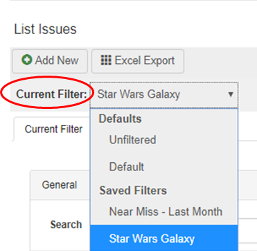- People Involved: Filter by items relating to the people involved in the issue (e.g. responsible manager, closeout manager, who the issue was identified by).