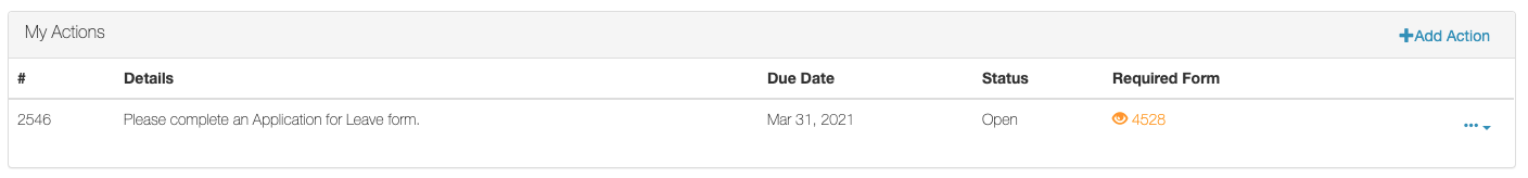 The My Actions section on the Lucidity Intranet Dashboard (default landing page) displays the required form next to an action when a Lucidity Inform has been raised through either a once-off or recurring Action.