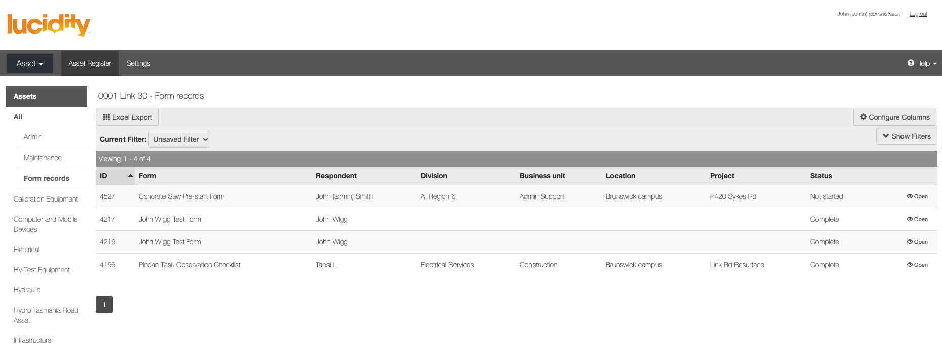All users can access the forms they are required to complete several ways throughout Lucidity Software. These are outlined in the table below. In all cases, once the required form is opened, the processes of completing it is the same.