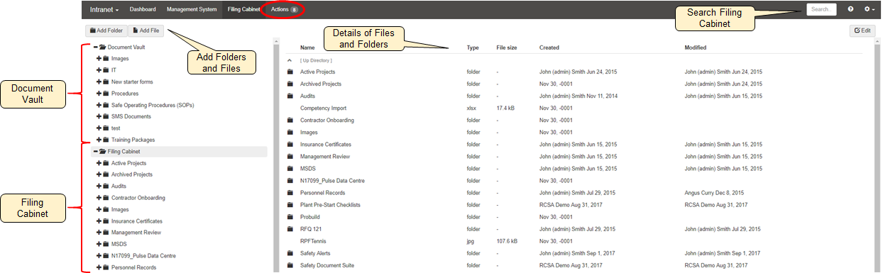 The Filing Cabinet generally comprises of two top level folders - the Document Vault and the Filing Cabinet.