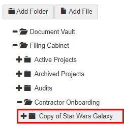 If a similar folder needs to be created, an existing folder can be copied. All content of the folder will also be copied, including sub-folders and files.