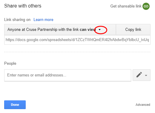 - In the pop-up window, click the drop-down arrow next to Copy Link.