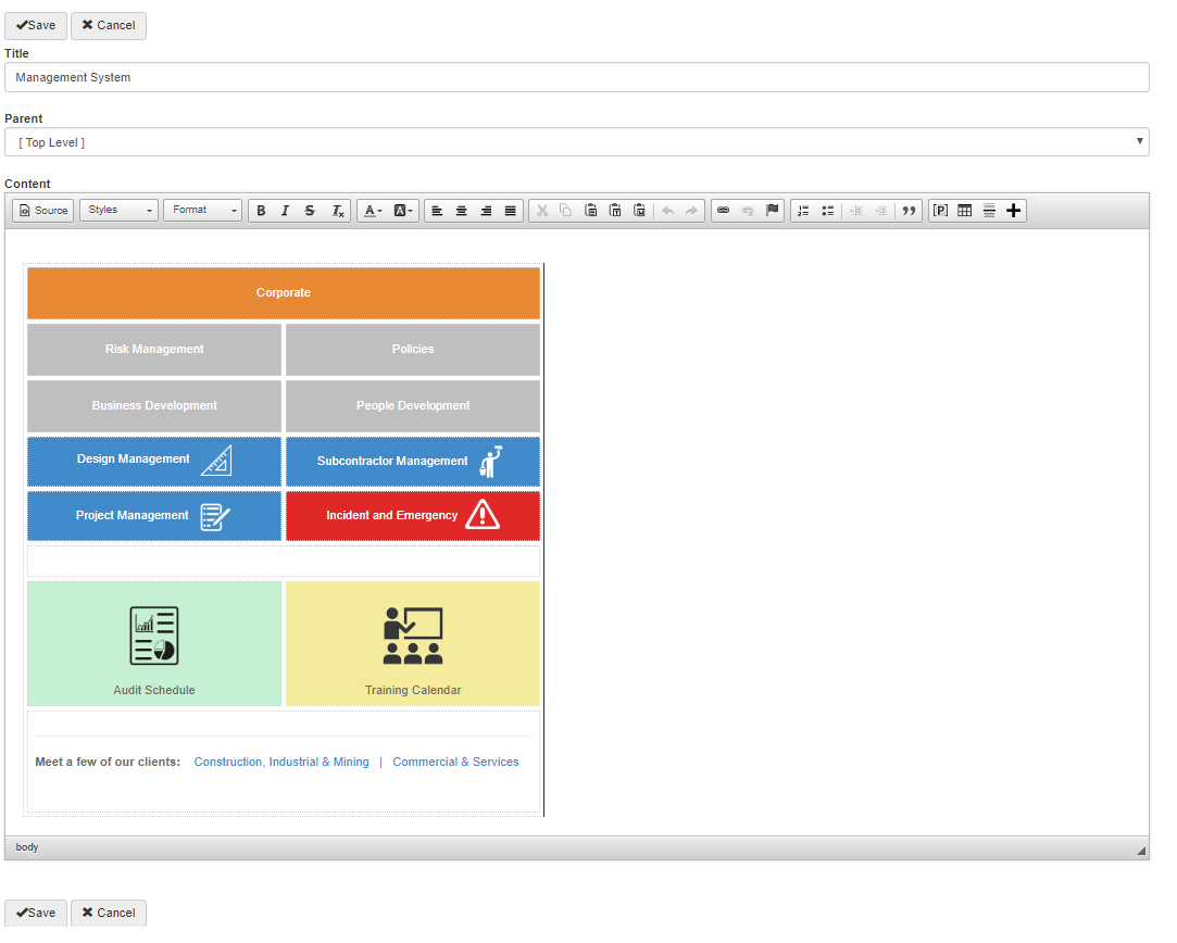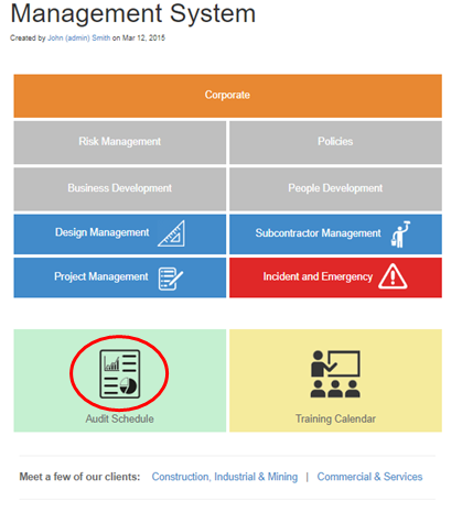 URL links in the Management System can be to external web pages or they can be to other pages within Lucidity Software. For example, the top-level parent page in the Management System within Lucidity Intranet may include an image of an audit schedule: