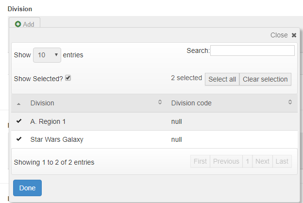These options can be used in isolation or combined. A user can have permissions to view every single form in a particular form group for three out of five divisions for example.