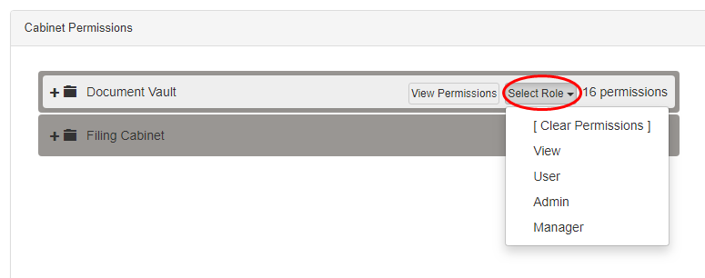 For example, if the Access role has three Filing Cabinet folders selected and the individual user account has three different Filing Cabinet folders selected, the user will be able to see all six folders.