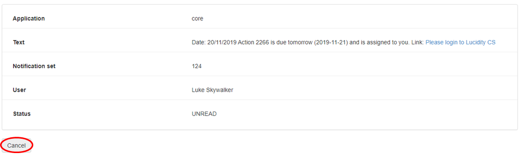 - Click Cancel to return to the notification page.